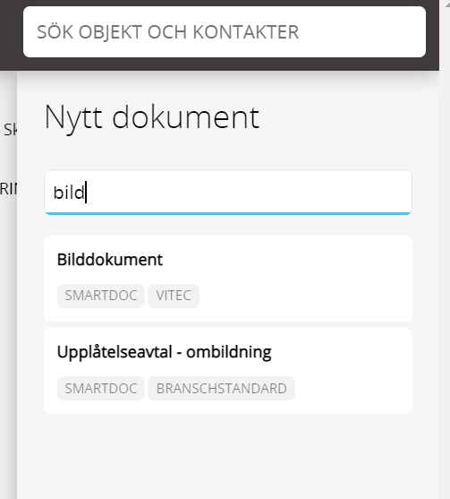 - Skapa nytt dokument och sök efter Bilddokument i sökrutan.