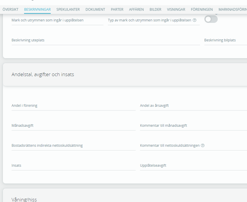 - Kontrollera att månadsavgiften är ifylld: Gå till fliken Beskrivningar på aktuellt objekt i Express och säkerställ att rätt belopp är inlagt.