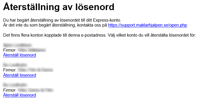 - Om du har flera länkar beror det på att du har flera inloggningar med samma e-post. Välj det kontor som gäller för lösenordsbytet.
