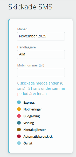 - Välj urval som månad, handläggare eller specifikt mobilnummer.