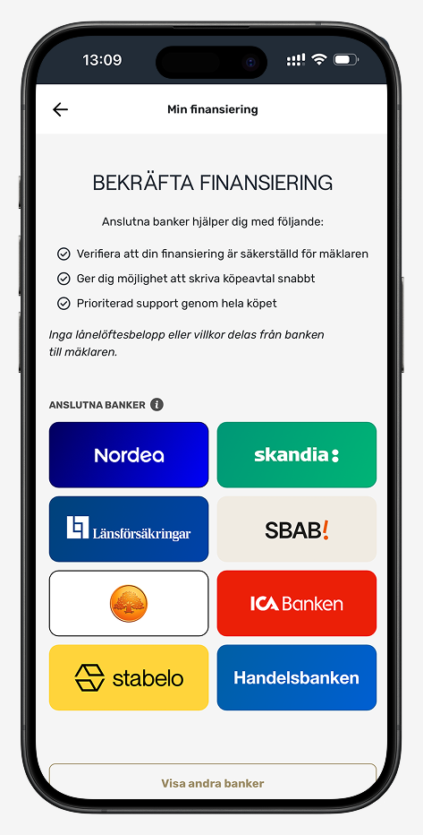 Lånelöftet bekräftas av banken man angivit, ex Länsförsäkringar Bank.