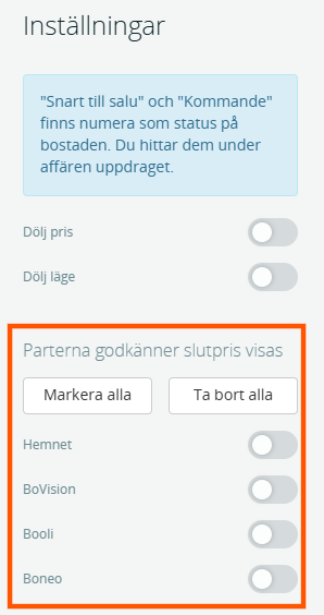 Om du inte väljer något av alternativen skickas inte slutpriset över till dessa marknadsplatser när bostaden markeras som såld.