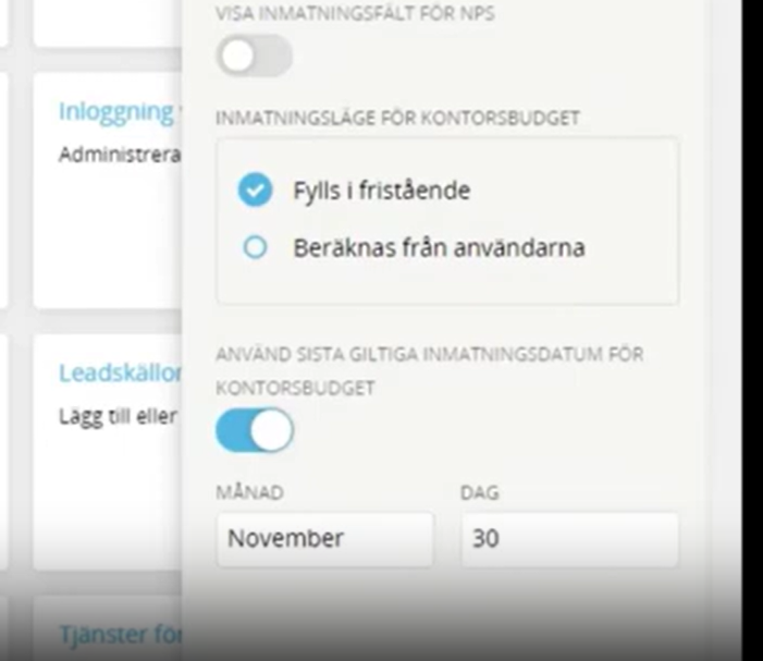 Man kan sätta ett sista giltigt inmatningsdatum. Efter det datumet låses budgeten och ska vara ifylld innan detta datum.