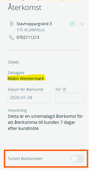 Det är bara "ägaren", dvs den deltagande mäklaren som har möjlighet att ta bort en enskild återkomst i dialogen för återkomster.